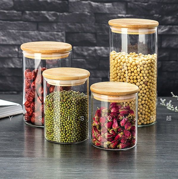 Borosilicate glass jar with bamboo lid